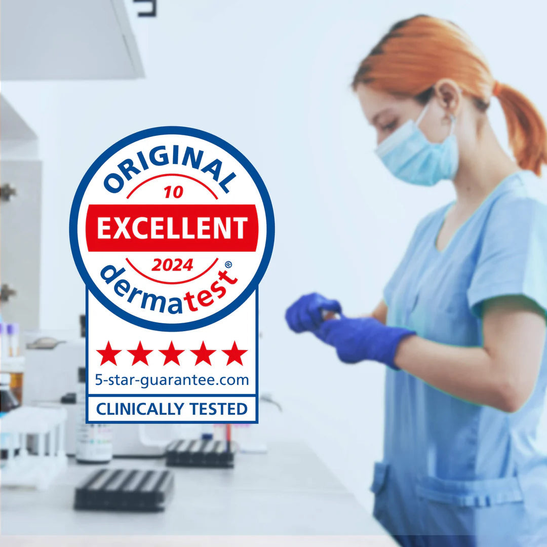 Bağımsız Dermatest laboratuvarı tarafından yapılan testlerde "Excellent" notu almıştır. Sağlığınız için güvenli ve etkisi kanıtlanmıştır.